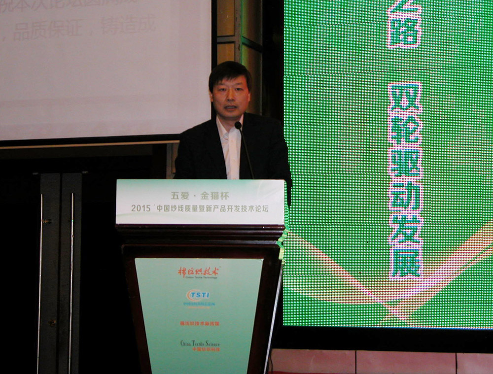 四月的無(wú)錫鶯飛草長(zhǎng),綠意盎然,在這春光明媚的人間四月天,“五愛(ài)·金貓杯”2015’中國(guó)紗線質(zhì)量暨新產(chǎn)品開(kāi)發(fā)技術(shù)論壇于2015年4月15日~17日在無(wú)錫錫州花園大酒店隆重召開(kāi)。本公司作為此次會(huì)議的冠名單位,各方面鼎力協(xié)助主辦方籌備會(huì)議,保證了會(huì)議的順利召開(kāi)。